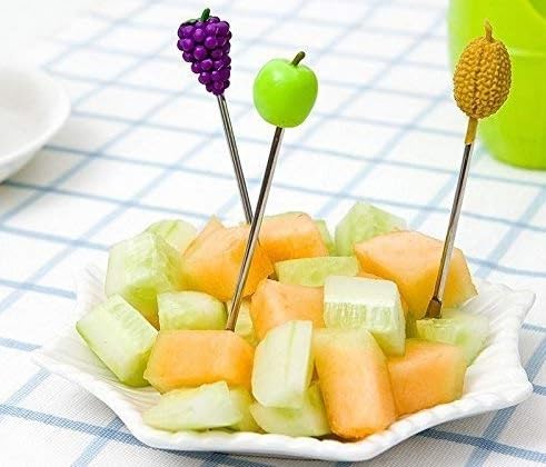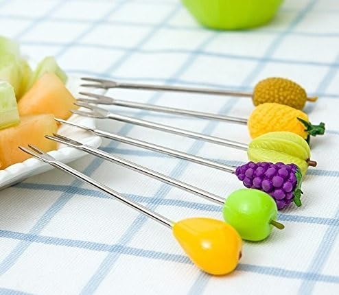 6pcs Fruit Shape Food Snack Stainless Steel Fruit Picks with Holder Plum