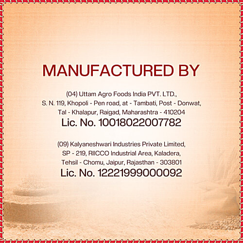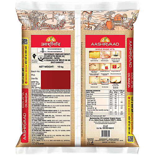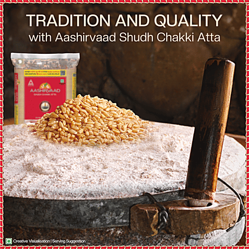 Launched on 27th May 2002, Aashirvaad Shudh Chakki Atta has now become No. 1 in branded packaged atta across the country. Behind every Aashirvaad pack are the Indian farmers and Aashirvaad experts who've made the atta with extra care. The 4-step advantage process of sourcing, cleaning, and grinding ensures zero human contact with the atta. Aashirvaad prides itself in making 100% pure whole wheat atta with all its natural dietary fibres intact which ensure that you and your family receive optimum nutrition for a healthy life. Directly sourced from a wide network of Indian rural farmers, Aashirvaad Shudh Chakki Atta is Made in India. The grain produce goes through a 3-step cleaning process that ensures the best quality of wheat grains. The grains are ground using the chakki-grinding method which makes sure that the chakki atta contains 100% Sampoorna Atta and 0% Maida.