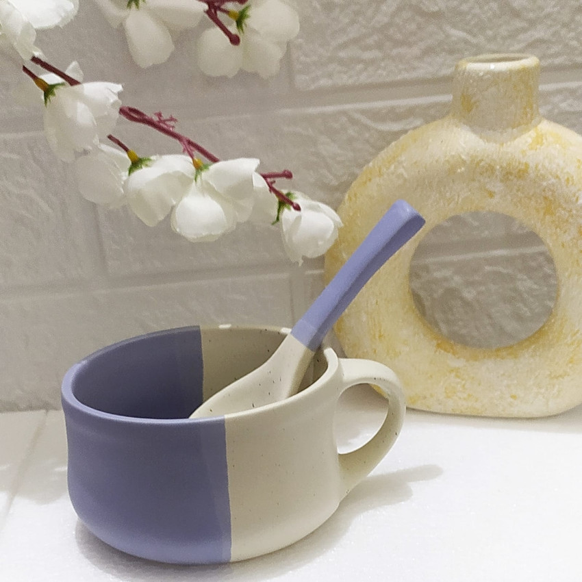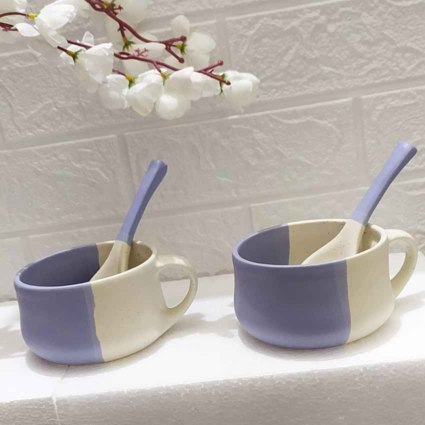 AAV WORLD Ceramic Soup Bowl (Pack of 2, White, Purple)