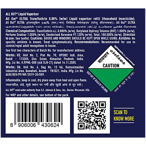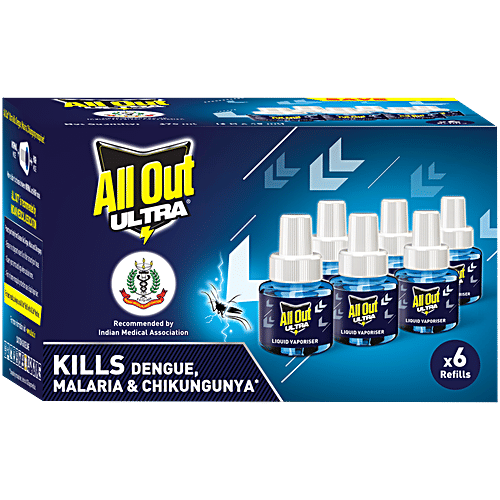 All Out Ultra Liquid Vaporiser Mosquito Repellent Refills, 6x45ml