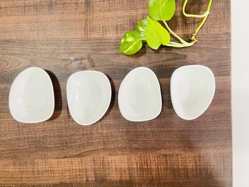 ALTAICA Ceramic Small Sauce Bowl Set of 4 Dip for Serving Chutney, Salsa, Sauce- Oval Bowl Serving Set SINGLE PIC