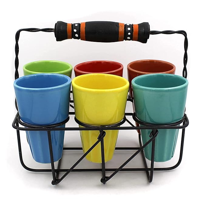 Amazecart Ceramic Tea Glasses (Cutting Chai Glasses) with Holder Stand, Set of 6,Multicolor