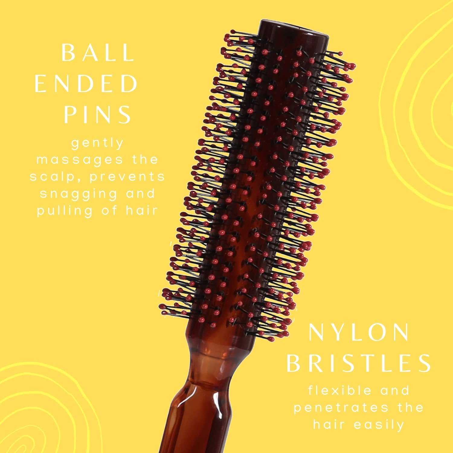 Ball Tip Nylon Bristles : This round brush for hair styling comes with flexible ball tipped soft nylon bristles that easily penetrate the hair, stimulate and massage the scalp gently and help in detangling and adding a root lift