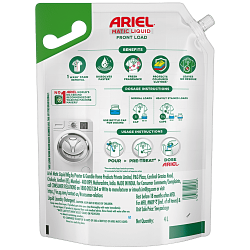 Ariel Liquid Detergent Front Load - Stain Removal In Washing Machine, 4 L