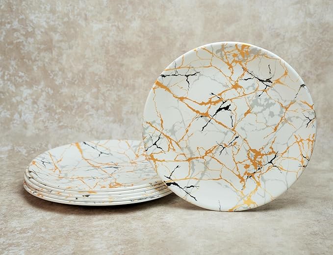 Dinner Plates: Upgrade your dining experience with our Black & Golden Texture melamine dinner plates set of 6, a perfect blend of style and durability, Complements your existing kitchen utensils set and crockery collection.