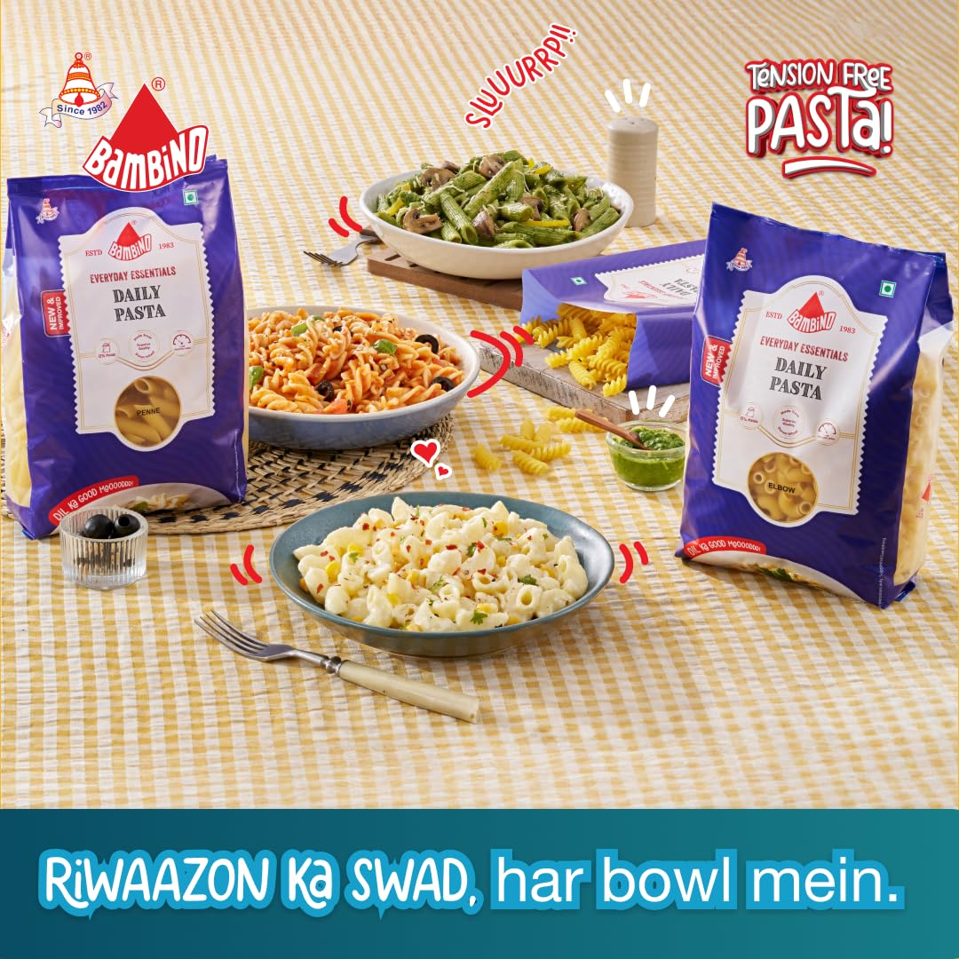 Bambino Pasta is made of 100% durum wheat semolina (Suji), which is best suited to high quality dry pasta. Bambino Pasta enjoys popularity in every household. Combine it with cheese, vegetables, meat etc. and get a perfect balance of carbs, proteins, calcium and other essential nutrients needed by your body.