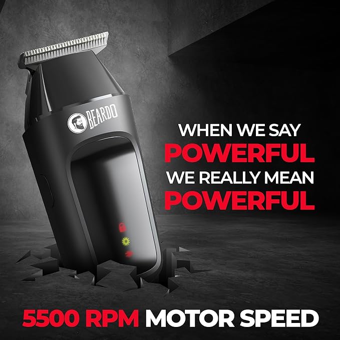 Beardo Apex Go Trimmer for Men - 80-Min Run Time - Powerful 5500 RPM motor - Compact Travel-Friendly Design - Self-Sharpening Blades, 3 Comb Attachments, Type-C Charging, Digital Display | Gift For Br