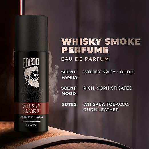 Beardo Whisky Smoke Perfume Body Spray for Men 120ml | Spicy, Woody - Oudh No Gas Deo for Men Long Lasting |Date night Deodorant for Men |Gift for men | Christmas gift for men | Gift For Friends | Gift for Men