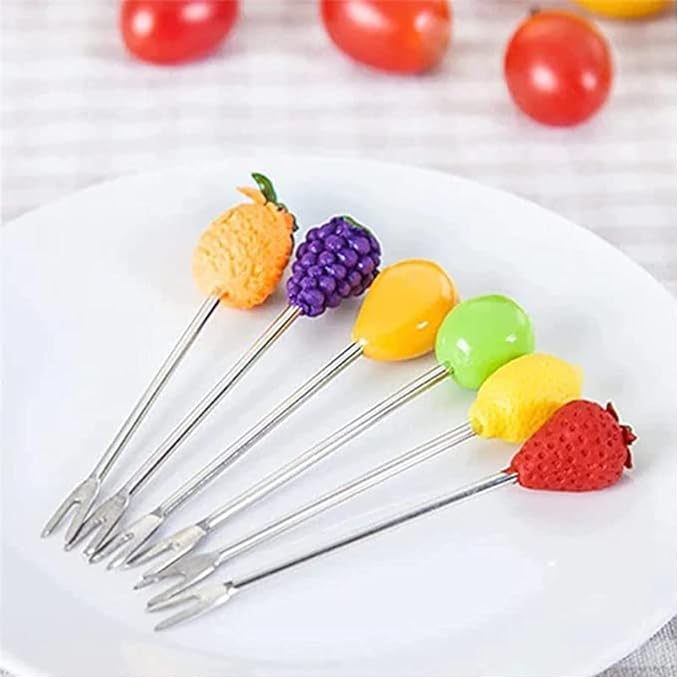 Bekner Mini Fruit Fork for Kids Fruit Spoon Fork Set Fruit Shape with 6 Cute Multi Fruit Fork & Stand Beautiful Design for Kitchen and Commercial (Multi Color)