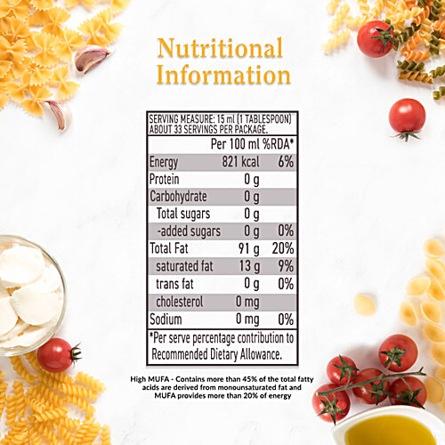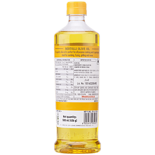 Bertolli is the no. 1 Olive Oil Brand in the world. Bertolli was born in 1865 in Lucca (Tuscany). The brand is committed to providing of Olive Oil to its consumers. Bertolli Classico Oilve Oil is perfect for all purpose cooking and is particularly ideal for sauteing- Vegetable saute; frying- Puri, spring roll; grilling- Veg grill, chicken grill and more. It is a pure natural oil rich in Omega-9 unsaturated fat, help in regulating the cardi-circulatory system.