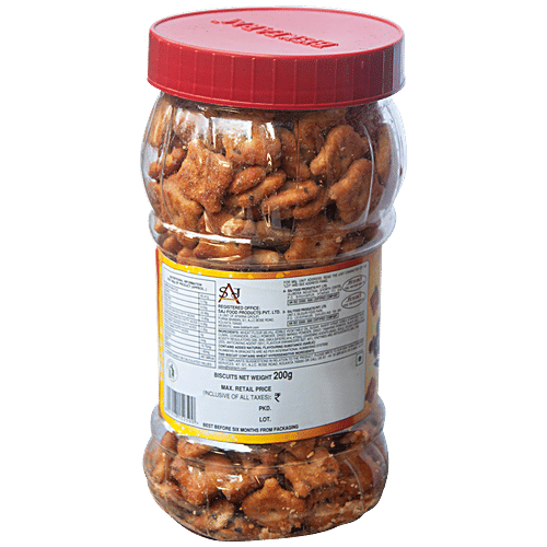 Bisk Farm Mast Jeera Jar biscuits are a great companion to well evenings. These biscuits have a flavour of jeera and other ingredients, which make it very hot. These biscuits generate the activity in you and make you very energetic. The tempting taste of these biscuits makes you so fond of them that you just cannot stop at just one piece. These biscuits are appropriate for all occasions, and one of the finest ways to get the gathering in motion.