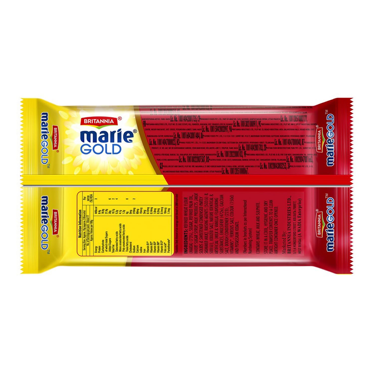 Each Marie Gold biscuit is crisp and light Packed with the goodness of Vitamins and Minerals that make for healthier teatimes. Tea times are incomplete without a packet of Britannia Marie biscuits. Base Flavor: Plain. Organic : No. Container Type: Pouch. Maximum Shelf life: 6 Months