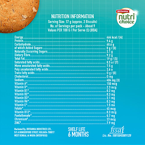 Britannia Nutrichoice Oats Cookies Diabetic Friendly, 6 x 25 g (Multipack)