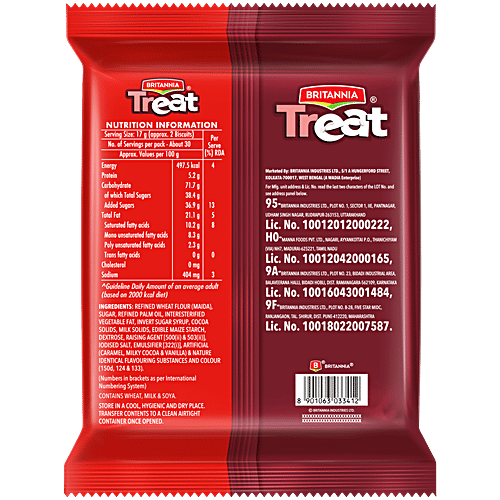 Indulge in the delightful combination of Britannia Rich Vanilla Creme sandwiched between crispy choco biscuits with Treat Vanilla Creme. This irresistible treat is a favorite for everyone, featuring a rich, smooth creme that adds a burst of flavor to every bite. Each mouthful promises endless fun and a creamy delight that will leave you craving for more. Treat yourself to the perfect blend of crispy and creamy goodness with Britannia Treat Vanilla Creme biscuits.