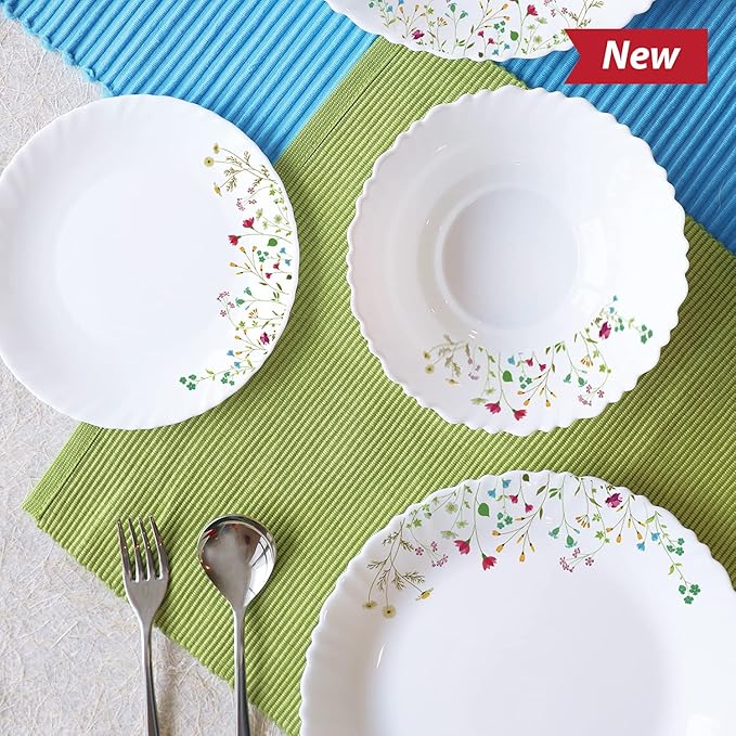 Cello Opalware Dinner Set - 29 Pieces, White dinner plate 6 n/duarter plate 6 n/veg bowl 6 n/soup bowl 6 n/serving bowl 2 n/deep round platter 1 n/salt & pepper 2 n/