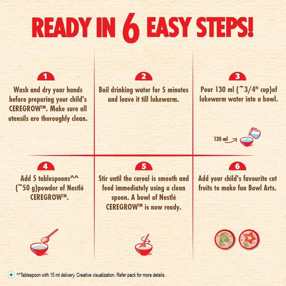 With ALA (Omega 3) to help support normal brain development and Iron for normal cognitive development With calcium & vitamin D to help support normal bone growth With protein to help support normal muscle growth A bowl of dense nutrition with goodness of wheat, rice and oats, along with milk and fruits like apple, orange and pomegranate