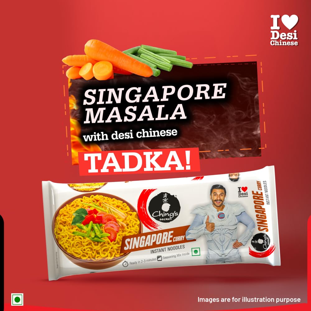 DESI CHINESE: Give a treat to your taste buds with the delicious burst of Desi Chinese flavour that will make you forget your plain old noodles QUICK & EASY: Enjoy a bowl of lip-smacking noodles in just 2-3 minutes COOKING INSTRUCTIONS: 1) Add Noodle Cake & Seasoning Mix to Boiling Water 2) Cook for 2-3 Minutes, Stirring Occasionally 3) Serve Hot! PERFECT FOR ANY OCCASION: Whether it's a quick lunch, a dinner with family, an evening hunger pang or a late-night snack, Ching’s Secret Singapore Curry Instant Noodles are perfect for any occasion SEASONING MIX: Packed with a mix of flavourful spices for a zesty bowl experience ENDLESS CULINARY POSSIBILITIES: Add your favourite vegetables to create a personalised dish that suits your taste preferences VEGETARIAN FRIENDLY: Ideal for vegetarians, these veg noodles offer a delicious meal option in no time!