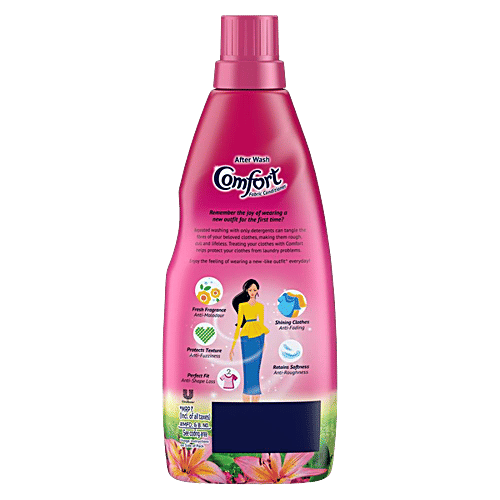 Want your clothes to shine like new every day? A small step of Comfort After Wash Fabric Conditioner Lily Fresh 860 ml gives your clothes unbeatable shine, that detergent alone can’t deliver. Even if you use the best detergents, repeated washing can tangle cloth fibres, making them rough, dull & lifeless. Taking a small step of Comfort After Wash Fabric Conditioner nourishes the cloth fibres damaged by detergent, giving them new like shine even over repeated washing. Not only shine, our range of fabric softeners gives visible softness to your favourite clothes while also delivering long lasting freshness.