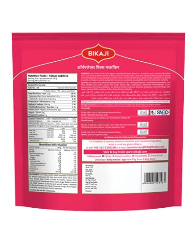 The Ingredients are: Edible Vegetable Oil, Split Chickpea, Whole Lentils, Peanuts, Dried Potato Slice, Rice Flakes, Mixed Spices. BIKAJI Cornflakes Mix Mastkin with cashew crunchy fried potato sticks almond and raisins snack mixture 350 grm (pack of 1) Volume: 350 gm each pack Shelf Life: 6 months Crunchy, spicy potato sticks Embellished with almonds, cashew & raisins No flavours, colours or preservatives