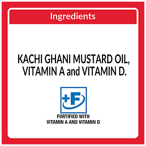 Dalda 'Kachi Ghani' Mustard Oil is your trusted kitchen partner. With a strong aroma, elevated pungency level, and an authentic mustard flavour, this pure Kachi Ghani Mustard oil will enhance your cooking experience and add a unique flavour to your food. High in MUFA, omega-3, and unsaturated fats, Dalda Kachi Ghani Mustard Oil is the perfect blend of flavour and health.