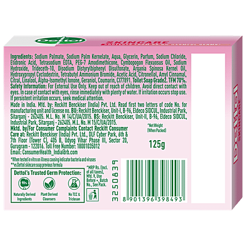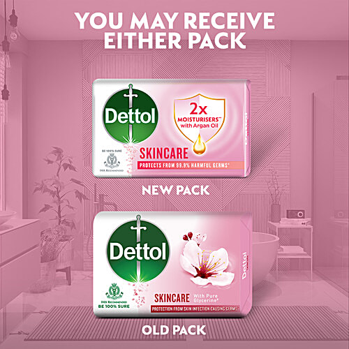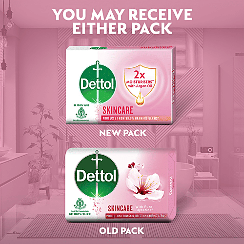 Be 100% sure to protect your skin from 100 illness-causing germs and bacteria. Dettol's Skincare Germ Protection Bathing Soap bar keeps your skin healthy every day. The trusted germ-protection formula of Dettol soap acts like a barrier between your skin and a wide range of unseen germs.Dettol bathing soap keeps you fresh all-day long while the glycerine-rich formula gives a moisturised and healthy looking skin. Safety Information: Keep out of reach of children unless under adult supervision. Avoid direct contact with eyes. For external use. In case of contact with eyes, rinse immediately with plenty of water. If persistent irritation occurs, seek medical attention.