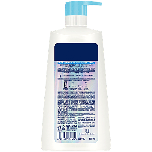 Is your hair increasingly becoming prone to dryness, roughness to the extent that it tends to become stiff and doesn’t move naturally. The dryness in your hair is your hair asking for hydration. Dry, rough hair is indication of beginning of damage. Your hair is experiencing the onset of damage and loss of water balance is one of the possible causes. Dove understands this and hence brings to you an effective solution that helps restore the water balance, leaving hair hydrated for upto 100 hours^ with regular use. Introducing Dove Glycolic + Hydration shampoo - enriched with 5% Hydra-Glycol~ and Bio-Protein care that helps in repairing hair and restoring hydration. For the first time in India, Dove has introduced 5% Hydra-Glycol~ technology with the new Dove Glycolic + Hydration range. 5% Hydra-Glycol~ includes hydrating glycerin, sodium gluconate, glycolic acid, propylene glycol - together these effectively hydrate your dry hair. The Result - dry, stiff hair becomes hydrated and fluid as if flowing like water, moving effortlessly as you go about your day. Disclaimer: ^Based on lab tests with Dove Glycolic+ Hydration shampoo versus non-conditioning shampoo with regular use ~5% Hydra-Glycol is a combination of glycerin, sodium gluconate, glycolic acid, propylene glycol, citric acid, dimethiconol and sodium benzoate.