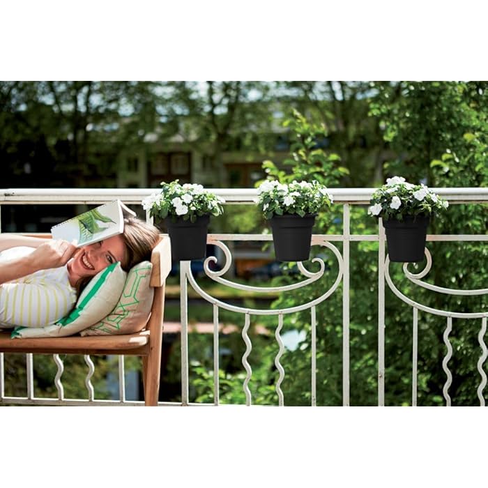 The elho Green Basics Easy Hanger S 26 is a stylish and sustainable planter made from recycled plastic, designed to fit railings up to 6cm wide. Its frost-resistant feature ensures durability across all seasons, making it an ideal choice for plant lovers looking to enhance their balcony or outdoor space