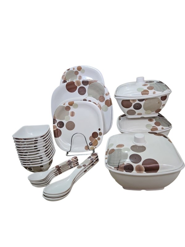 Flipkart SmartBuy Pack of 40 Melamin Blush Blossom Melamine Dinner Set | Dishwasher Safe| Stain Resistant Dinner Set (Brown, White)