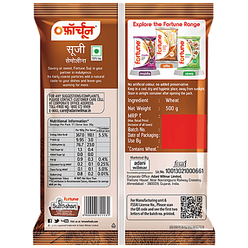 Savoury or sweet, Fortune suji is your partner in indulgence. Its fairly coarse particles add a natural taste to your dishes. Make your favourite upma, Sheera or Kesari Bath and serve your loved ones. Upma is considered to be one of the healthiest breakfast. So Fortune Suji is an ideal option for and a key ingredient to your healthy breakfast.