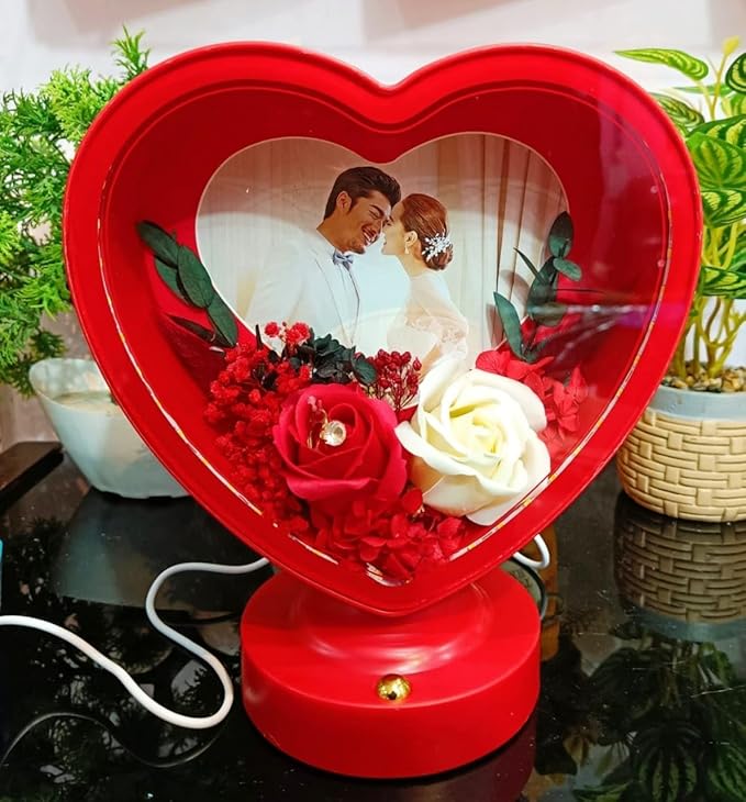 Fun2shh Personalised Heart Shape Led Photo Frame with flowers inside with touch sensor for Gifting on Birthday, Anniversary, Valentines Day (Assorted)