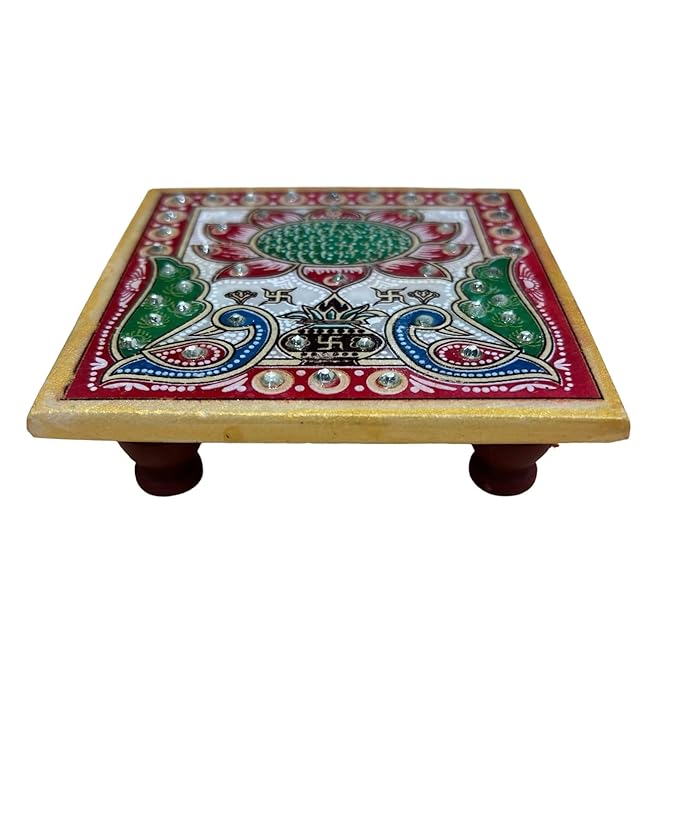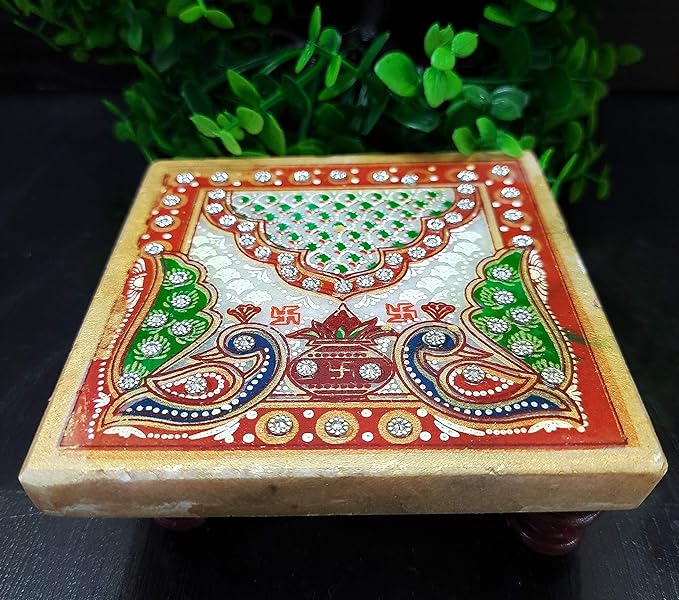 idol Height: 10 Cm It Can Be Used In Puja Room To Keep Puja Items ,Statues And Other Auspicious Things. Care Instruction : Clean It With A Dry Cloth. Ideal For Gifting Purpose. Beautiful Design And Made Of Marble Color : Multicolor, Material : Marble Package Contains: 1 Piece Of 10 Cm X 10 Cm Chowki With Ganesh Ji Idol Best Suited For Pooja Ghar. With A Unique Design, It Will Change The Décor Of Your Room And Make It Appear Lovely. It Is A Perfect Gift For Diwali ,Wedding Or House Warming Or Anniversary Or Festive Occassions. This Marble Chowki Is Handmade And Hand Painted Using Emboss Work ,Enamel And Stone Work