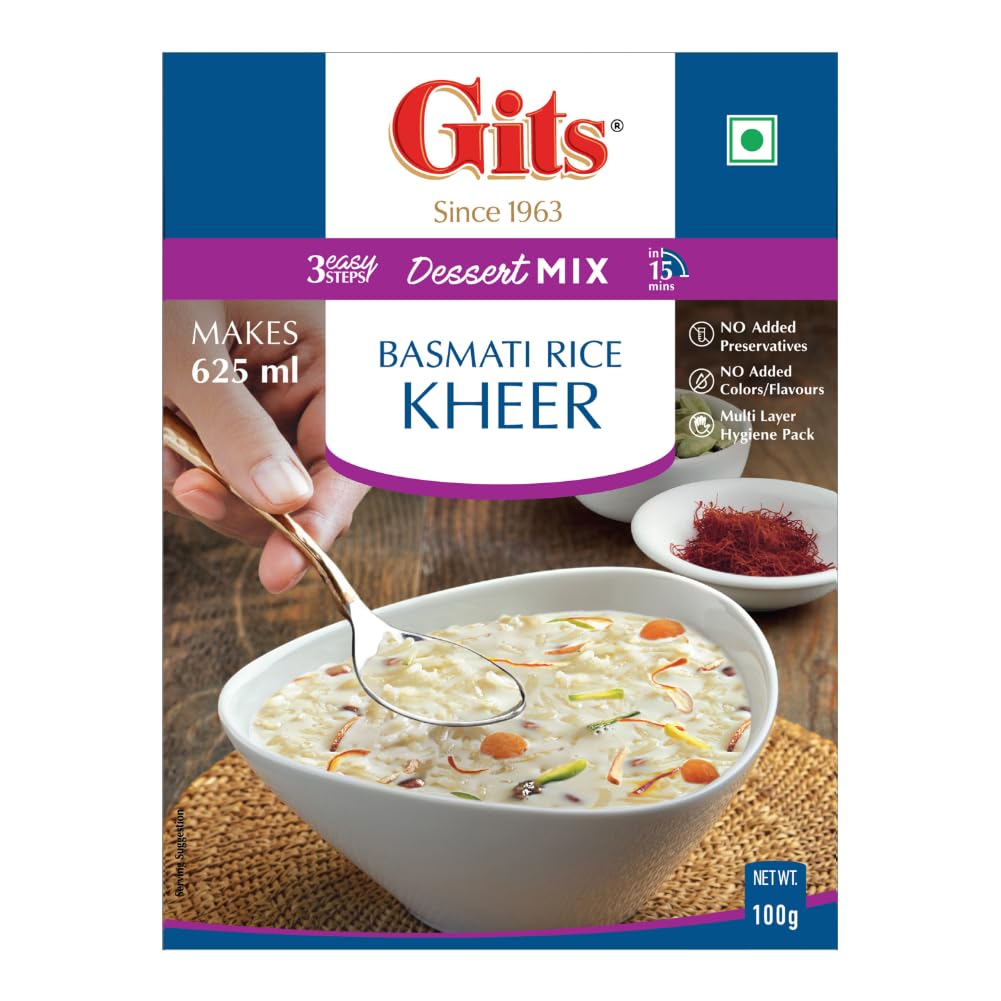 Gits Instant Rice Kheer Dessert Mix, Pure Veg, Indian Sweet and Dessert Ready Mix 100g