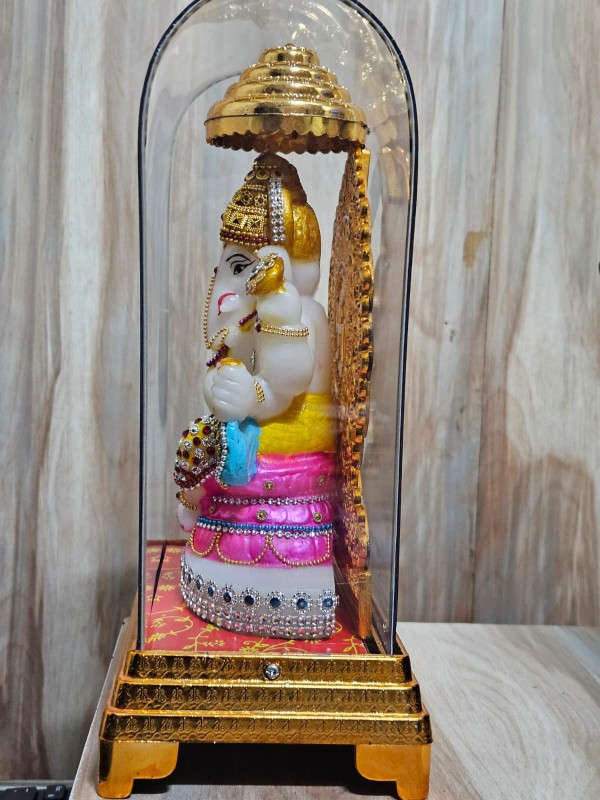 goddess ganesh ji in glass casing decorative showpiece(glass,multicolor) big size