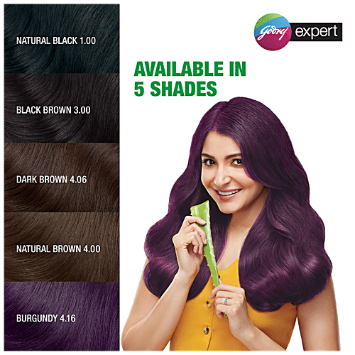 Godrej Expert Rich Creme Hair Colour now in a new single-use pack. Colour your hair and do root touch-ups - right in the comfort of your home. It's so convenient that all you have to do is mix and apply. The No-Ammonia formula keeps hair damage-free. Enriched with Aloe Vera & Milk Protein that keeps your hair unbelievably soft and shiny. Getting beautiful coloured hair just got simpler! Available in 5 beautiful shades - Natural Black, Black Brown, Burgundy, Dark Brown, and Natural Brown.