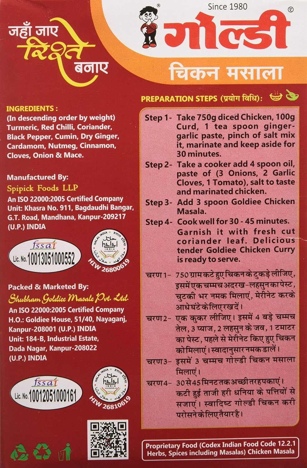 Package contents: 3 chicken masala 100 grams