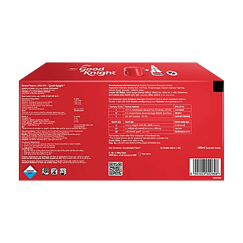 Good Knight Gold Flash is India’s most powerful liquid vapouriser. It consists of a mosquito repellent refill and a clip-on electronic mosquito repellent machine. This vapouriser system is powered by gold flash technology that has 2 modes - flash and normal mode. Flash mode can be used when there are many mosquitoes and normal mode is used when there are fewer mosquitoes. Visible powerful flash vapours instantly spread across the room and drive away mosquitoes, even the hidden ones. Flash mode releases visible vapours for 30 minutes every 4 hours, providing you and your family superior protection against mosquitoes. It is absolutely safe to use the mosquito repellent machine around children and families.