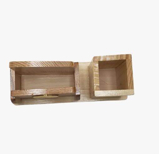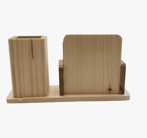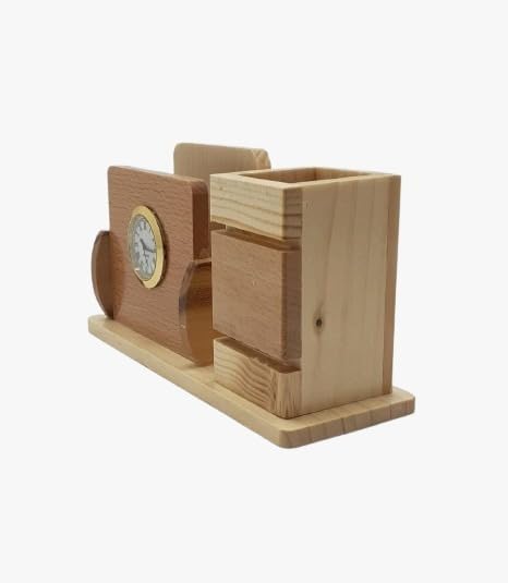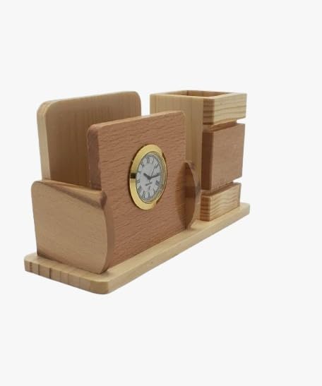 GSM Wooden Pen Stand with Clock - Wooden Card Holder Wooden Pencil Stand Wood Inserted Watch(L-17.5cm B-6cm H-9cm)