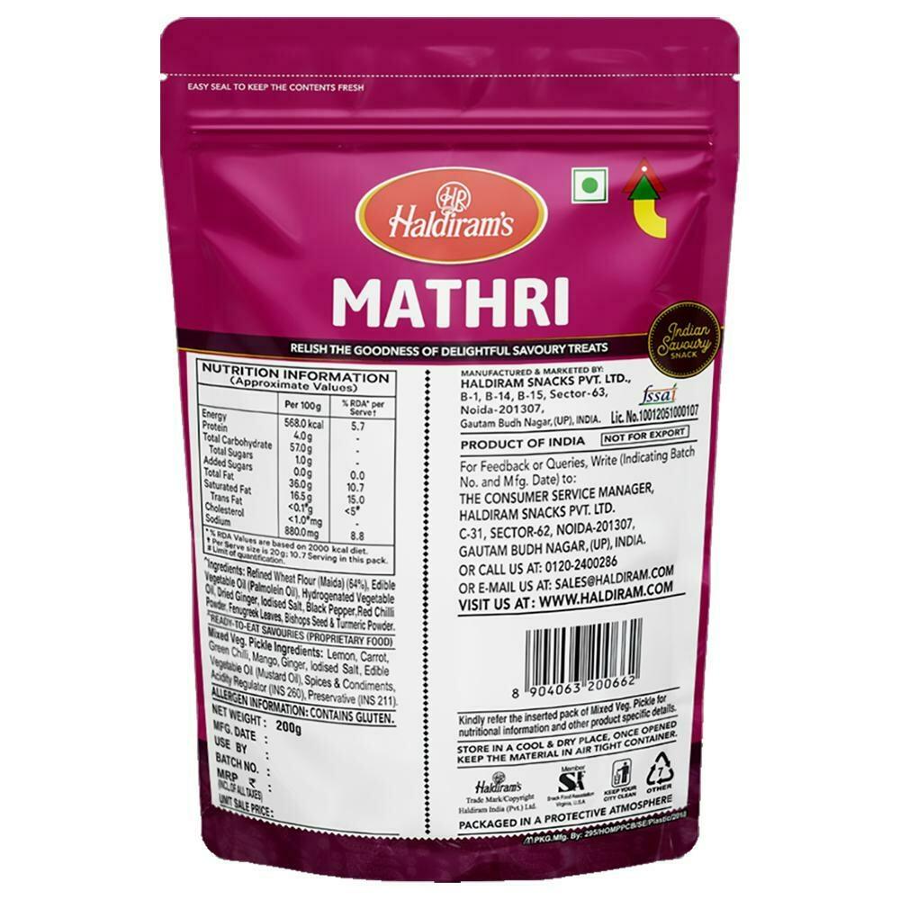 Haldiram’s is an Indian food company manufacturing a variety of traditional and western sweets, snacks, namkeens, etc. Haldiram's Delhi Mathri is a traditional, flaky biscuit like snack from Rajasthan and north western parts of the country. Made with authentic recipes and quality ingredients, it is a popular snack that is taken when traveling. It is eaten during special occasions like weddings, religious occasions like Karva Chauth and also as a tea-time snack. Buy this product online today!