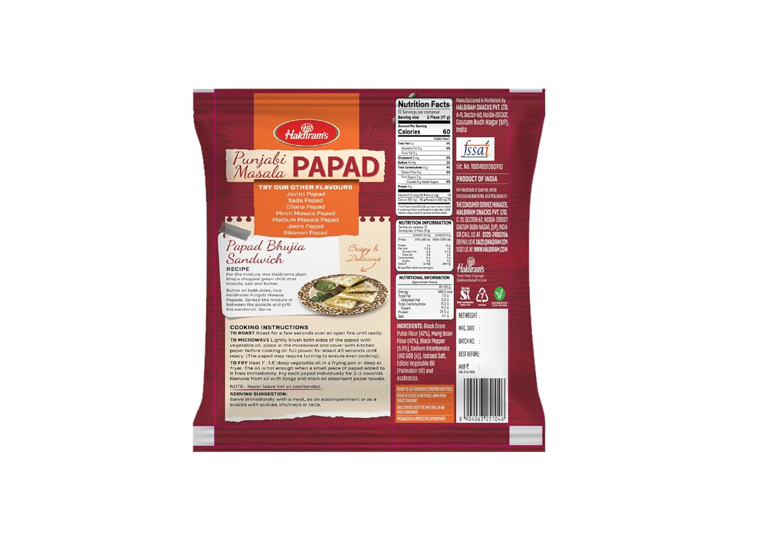 National brand It is a papad Country of Origin: India Size Name: 200 G (Pack Of 1); Material Features: Vegetarian