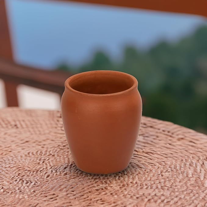 Handmade Indian Terracotta Clay Glass 1 Pieces, 100ML | Terracotta Brown Tea Cups, Coffee Mugs, Milk & Juice Glasses | Reusable & Multi-Purpose (100, Round, 1, Glass Set)