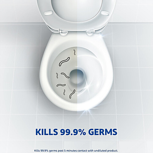 Harpic All in One is the one stop shop for all toilet cleaning needs. Unlike ordinary cleaners, it combines the benefits of Tough stain removal^, 99.9% germ kill and Freshness. The result is a sparkling clean, hygienic, fresh and germ free toilet without any malodour with every use of Harpic. 5x power action: 5 times better at lime scale removal VS ordinary cleaners, Helps eliminate mal-odour, Clings to attack stains, Kills all germs. India's # 1 Toilet Cleaner*. Always use Harpic toilet cleaner separately. Do not mix with other products. *Harpic claim as per Nielsen Retail Index data for period MAT Oct ‘20 for the India market in Cleaners – Toilet & Bathroom Category. ^Please refer to individual pack for details. #Kills 99.9% germs post 5 minutes contact with undiluted product.
