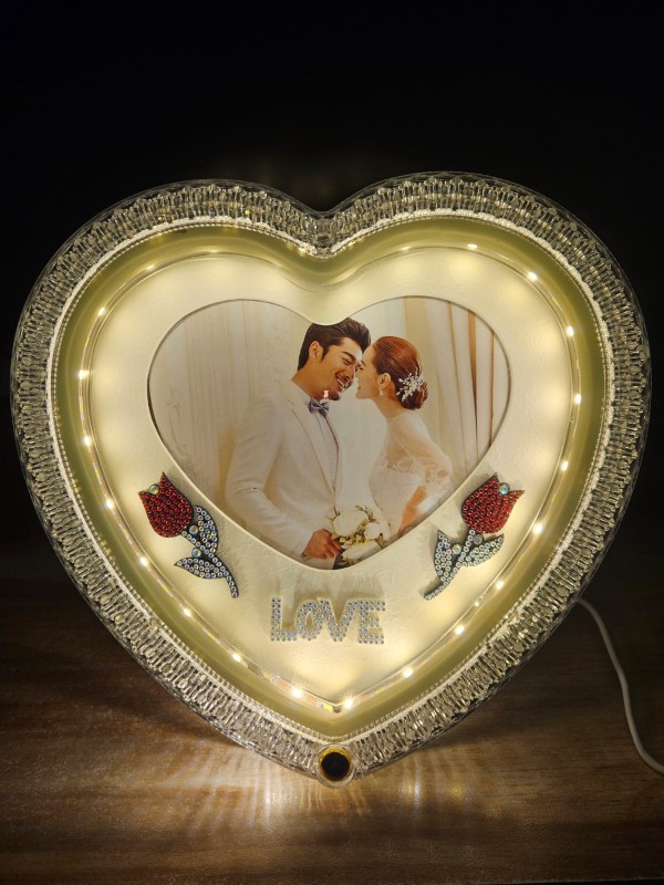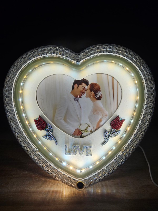Capture your special moments with this stunning heart-shaped photo frame , beautifully designed with glowing LED lights and decorative red roses. Perfect for weddings, anniversaries, or gifting your loved ones.
