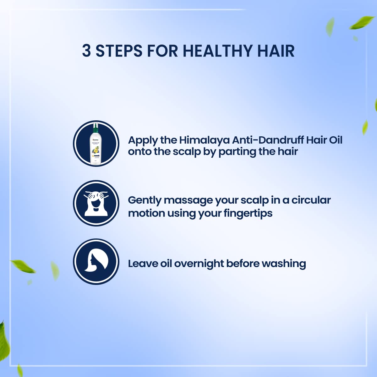 DAILY USHimalaya Anti-Dandruff Hair Oil is a non sticky, herbal hair oil. You can apply it deep into the scalp with the included comb applicator. REMOOur anti dandruff hair oil effectively fights dandruff and dryness of the scalp, hence ensuring a healthy scalp with strong roots. The natural extracts present in our oil help fight and prevent infections, thus soothing an itchy scalp. HERBAL & PROUD: Our oil is fortified with the goodness of well-known herbs like Tea Tree Oil, Neem, Rosemary & Hyamaraka. Regular use keeps the scalp healthy and dandruff free. Ingredients: Rosemary, Tea Tree Oil