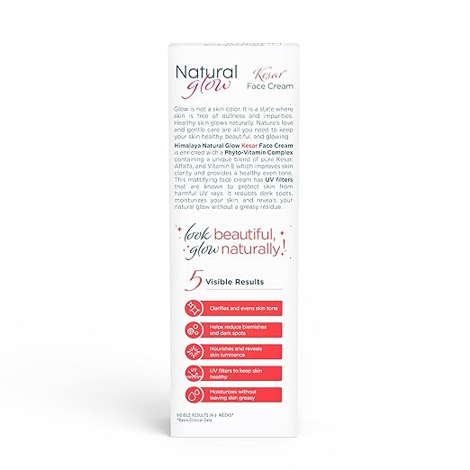 Himalaya Natural Glow Face Cream with Kesar & Vit E | For Non-greasy Even-toned & Radiant Skin| Phyto-vitamin formula with UV protection| Reduce Dark spots in 6 weeks |Clinically-tested & Paraben Free