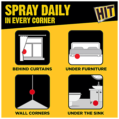 HIT Anti-Mosquito Spray kills dangerous mosquitoes that spread diseases like Dengue, Chikungunya, and Malaria, hidden in the corners of your home. To keep you and your family protected, spray HIT regularly in all corners, such as under the bed, under the sofa, behind the curtains, and cupboards, etc.