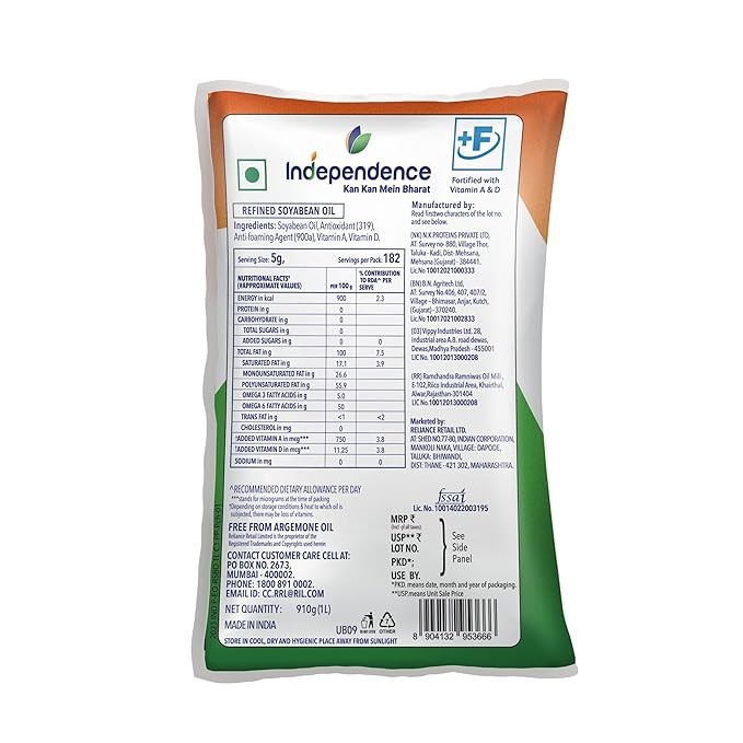Independence IND Refined SOYABEAN Oil 1 LTR Pouch