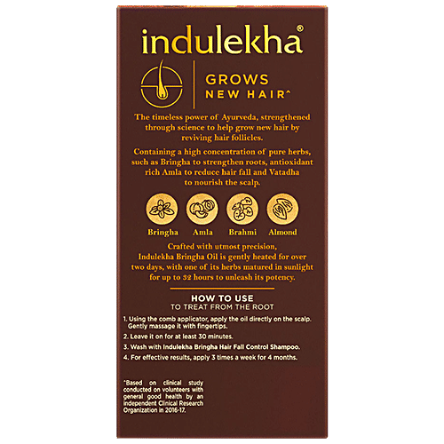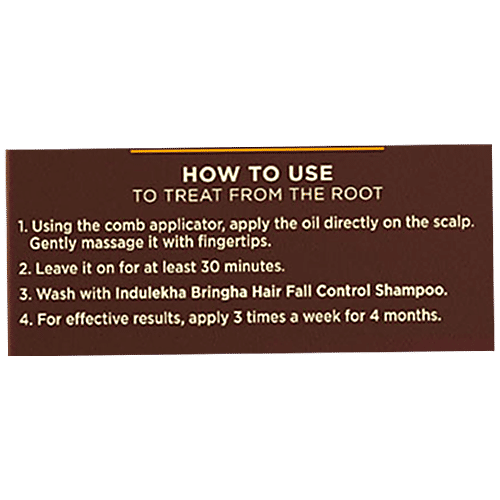 Indulekha Bringha Oil is an Ayurvedic proprietary medicine recommended for the regulation of hair and scalp conditions like hairfall, dandruff etc. The excellent action of Indulekha Bringha oil is due to the actions of its Ingredients and the special manufacturing procedure of the base oil. During the production of Indulekha Bringha Oil, the Swethakutaja leaves are dipped in pure coconut milk oil (prepared by cold process technology). This prolonged blending process helps to extract the entire medicinal quality of the leaves and thus makes it an effective Ingredient of Indulekha Bringha Oil. Active Ingredients along with the base oil create an excellent combination that is extremely beneficial for hair.Svethakutaja It has anti-inflammatory and anti-dandruff properties. Also known for its antimicrobial properties and hence used for all types of psoriasis (skin disorder) and dandruff.Aloe vera contains enzymes which repair dead skin cells on the scalp. It promotes hair growth, prevents itching on the scalp, reduces dandruff and conditions your hair. it rejuvenates the hair with its own nutrients, giving it more elasticity and preventing breakage. Neem Provides anti-protozoal, antioxidant, anti-inflammatory and antibacterial properties. Neem helps to treat these conditions of hair and cleanse the scalp for healthy hair growth. Bringharaj Helps to improve hair growth and colour. Its extracts rejuvenate hair keeping the hair lustrous, dark and healthy. It also helps to nurture and condition hair.Amla Richest source of Vitamin C & antioxidants. It helps maintain youthful hair colour and retards premature greying and supports the strength of the hair follicles. Virgin Coconut Oil Virgin coconut oil is extracted by the cold compression method. It is higher in vitamin content, antioxidants, minerals, fragrance and even the amount of protein.