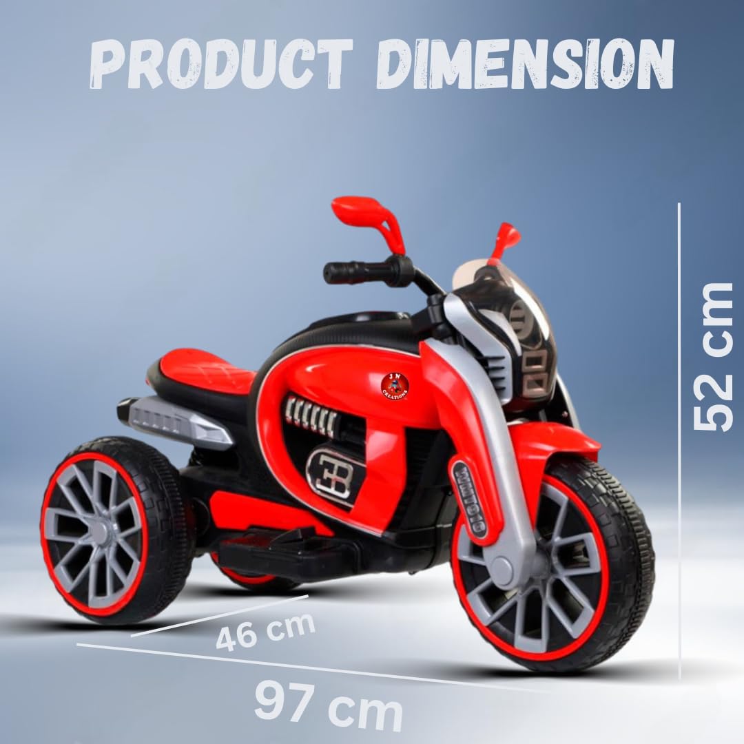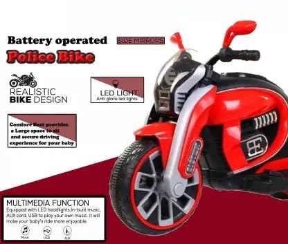 JN Creations 6V Kids Battery Operated Ride On Play Tool Police Bike with Foot Accelerator, Music & Light (2 to 5) (RED)