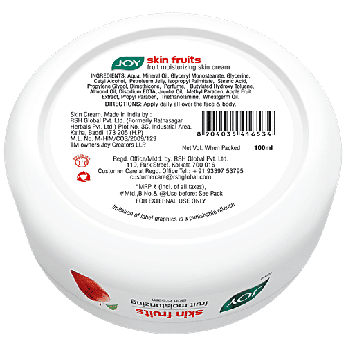 Joy Skin Fruits Fruit Moisturising Skin Cream is a superactive cream, with Active Fruit Boosters, which intensively moisturises the skin leaving no signs of dryness. Enriched with Apple Extracts, jojoba and almond oils, it revitalises the skins youthful beauty. It results in softer, silky, younger-looking skin.
