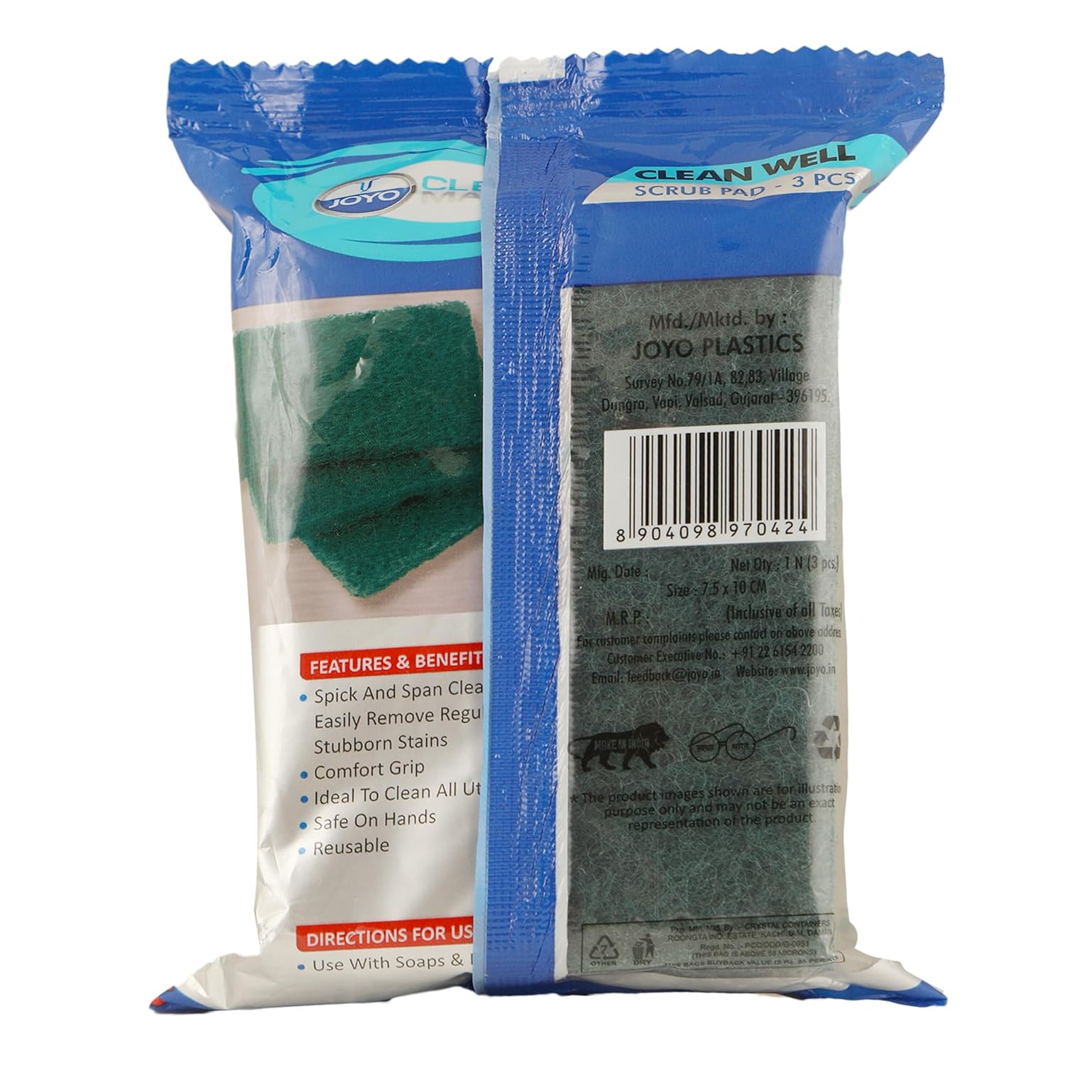Scrubby Pads: This product includes a pack of three scrubby pads, each measuring 7.5 x 10 cm, providing you with multiple pads for cleaning various surfaces Effective Cleaning: The scrubby pads feature a green pad design, which is known for its effective cleaning capabilities. It helps to remove tough stains, dirt, grease, and grime from surfaces with ease Versatile Use: Suitable for cleaning a wide range of surfaces, including kitchen countertops, sinks, stovetops, pots, pans, dishes, bathroom tiles, and more. These pads are versatile and can be used in both household and commercial settings Durable Material: Made of high-quality materials, these scrubby pads are durable and long-lasting, allowing for multiple uses without easily wearing out or tearing Convenient Size: The compact size of the scrubby pads makes them easy to handle and maneuver, allowing you to clean hard-to-reach areas effectively Multipurpose: These scrubby pads are not only ideal for cleaning tasks but can also be used for other purposes such as scrubbing vegetables or fruits, exfoliating skin, and more